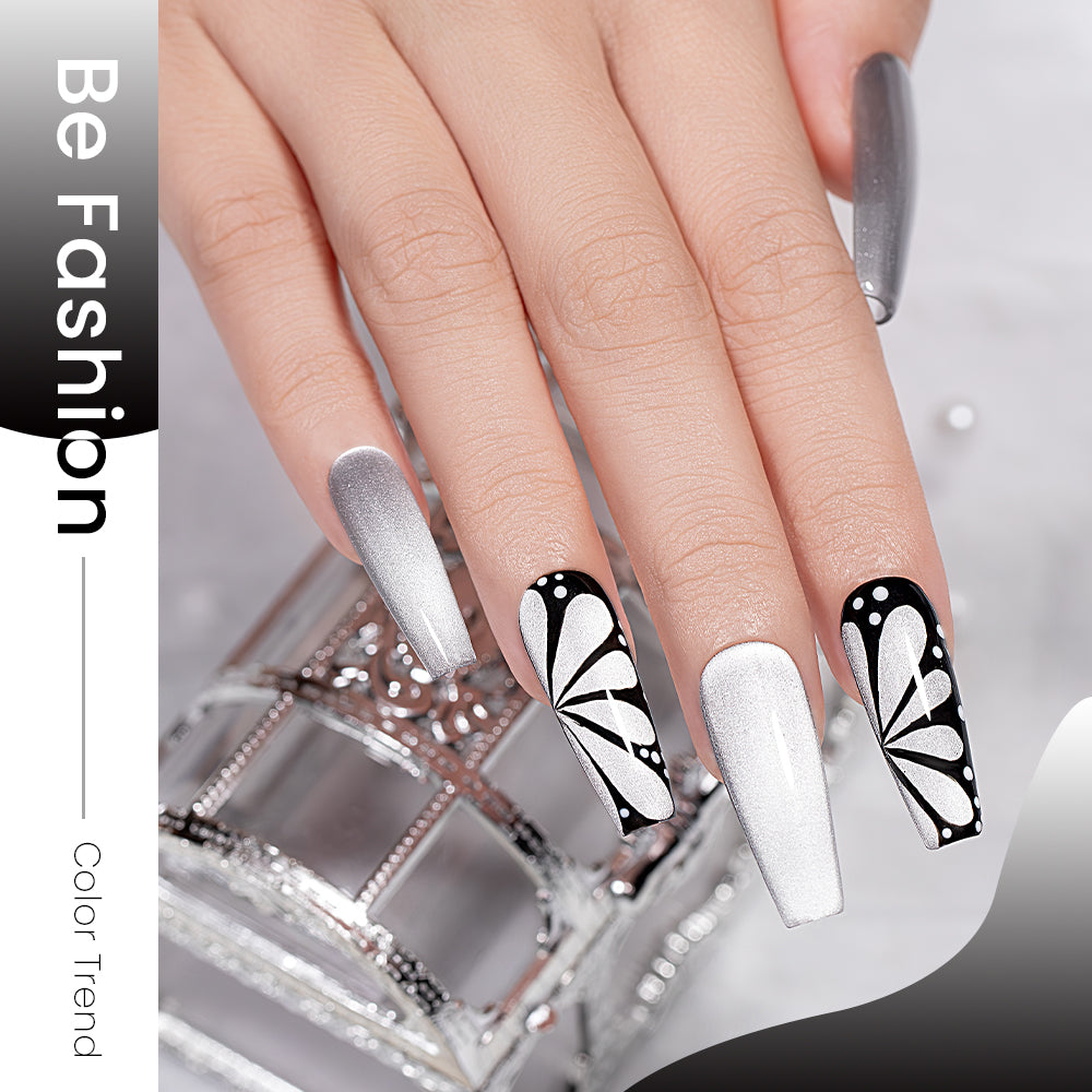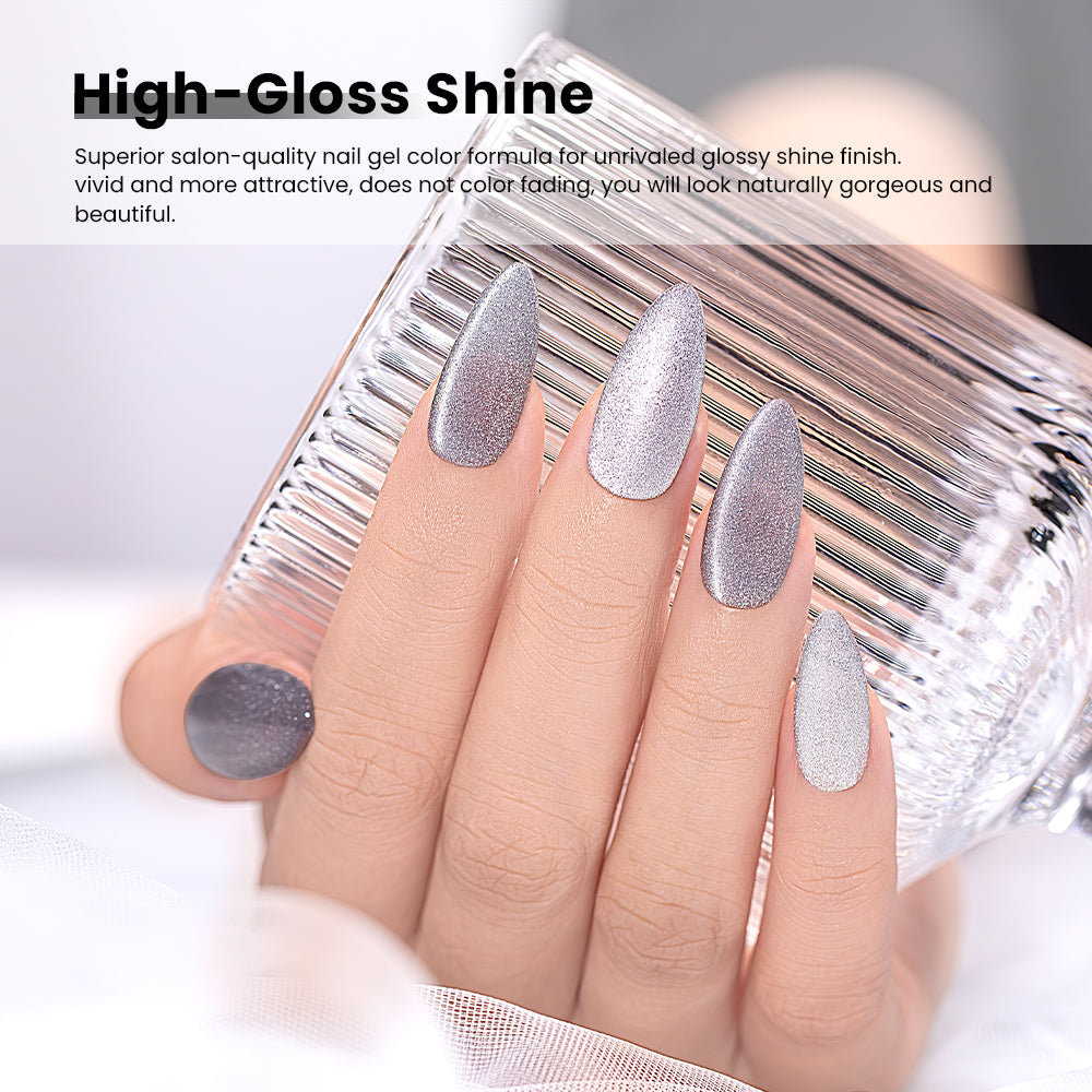 Verleihen Sie Ihren Nägeln einen Hauch von Eleganz und Raffinesse mit dem White Cat Eye Gel-Nagellack-Set. Dieses Set enthält sechs atemberaubende Farbtöne mit jeweils unterschiedlichen Partikelgrößen des Magnetpulvers, mit denen Sie einzigartige und faszinierende Cat-Eye-Effekte erzielen können, die schimmern und glänzen.