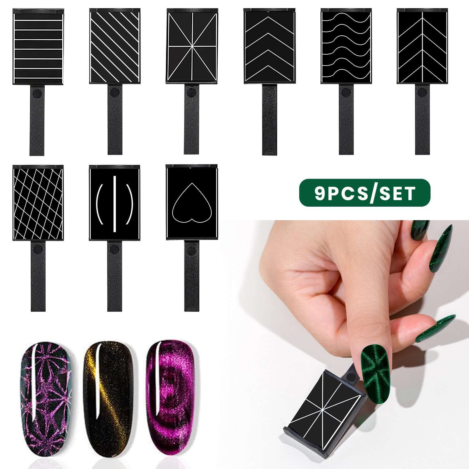 Entdecken Sie endlose Cat Eye Nagelkunstmöglichkeiten mit unserem 9-teiligen Magnetwerkzeug-Set!