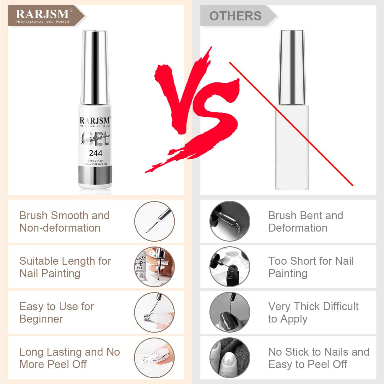 Das neue Design mit dem lackierten Gel-Nagellack und dem Pull-Line-Stift ist super praktisch für den professionellen Schönheitssalon oder für den persönlichen Gebrauch zu Hause. In jeder Flasche ist ein dünner Stiftpinsel enthalten. Bei der Nagelkunst müssen Sie den Zeichenstiftpinsel nicht wechseln und reinigen.