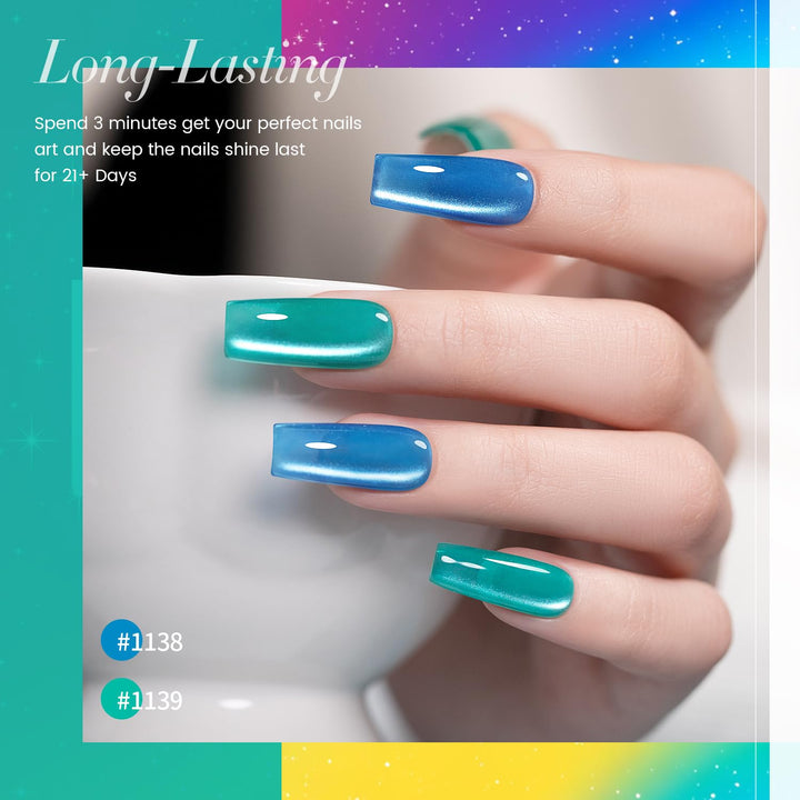 - #1138 - Neon Blau: Helles Himmelblau mit magnetischem Schimmer, cooler Candy-Glanz