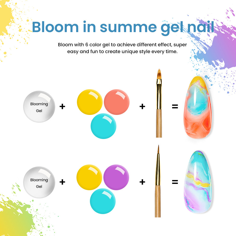 Entfesseln Sie Ihre Kreativität mit unserem magischen Blooming Gel! Dieses Spezialeffekt-Gel erzeugt mühelos wunderschöne Aquarell-, Marmor-, Blumen-, Batik- und Farbverlauf-Designs in Sekundenschnelle. Perfekt, um elegante und ausgefallene Nagelkunst ohne komplizierte Techniken zu kreieren.