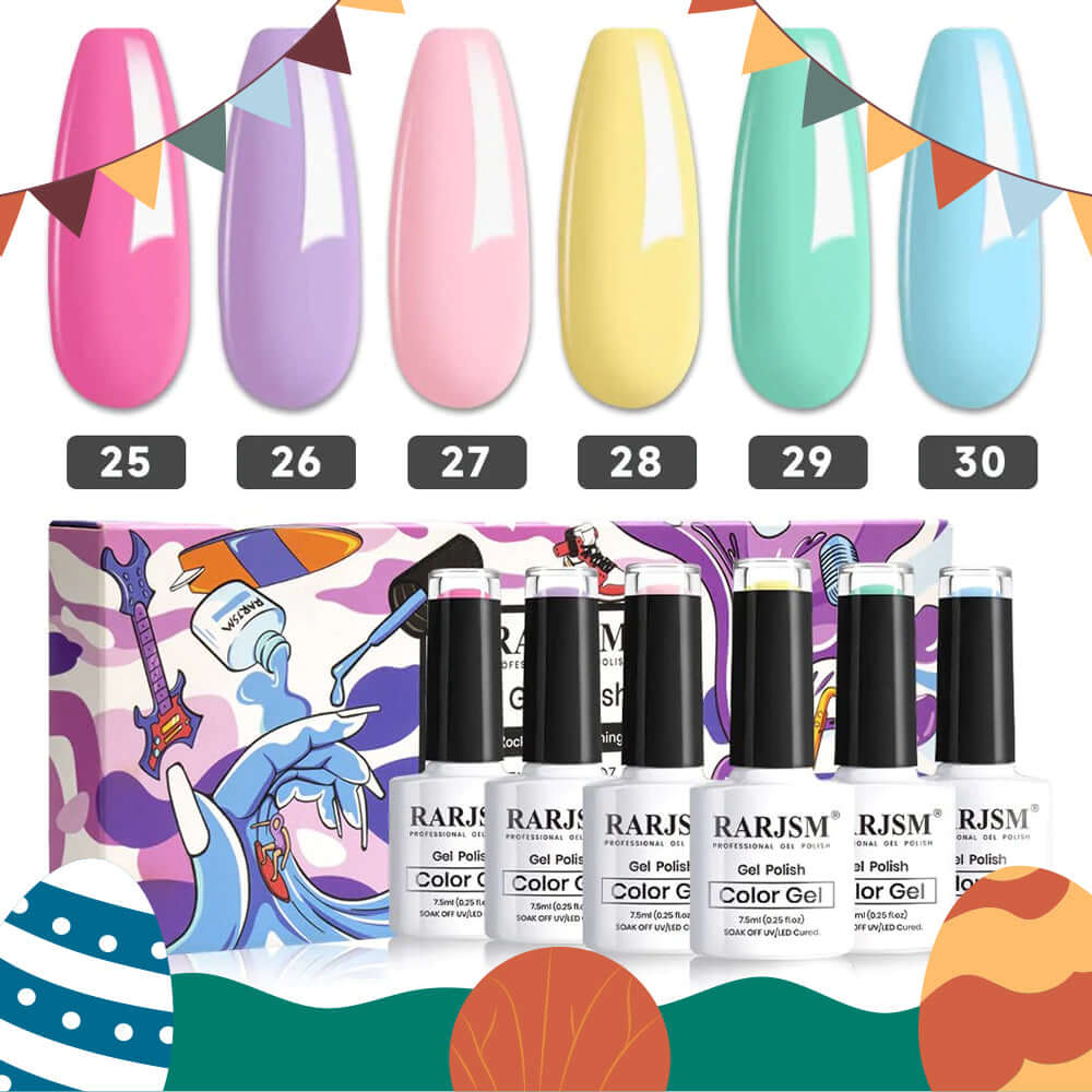 Pastell-Gel-Nagellack, Macaron-Farben-Kollektion, Rosa, Lila, Gelb, Grün, Blau, Nagellack-Set, 6 Stück, 7,5 ml, Frühlings-Sommer-Gel-Nagellack, Aushärtung erforderlich