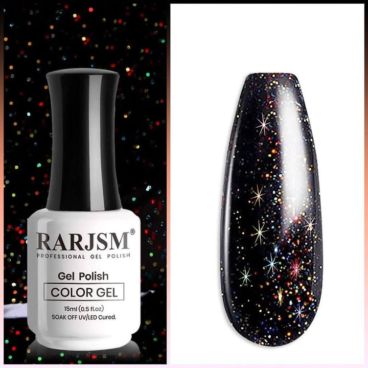 ✨ Atemberaubende Halloween-Farben: Dieses Set enthält ein leuchtendes, blutrotes Gel, verziert mit glitzernden Flocken und einem tiefen, sternenklaren Schwarz mit schimmernden holografischen Akzenten, perfekt für die gruselige Jahreszeit.