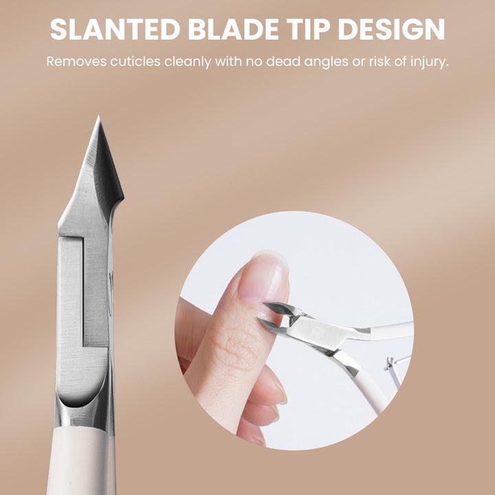 ✂️ Cortauñas para cutículas – Punta de hoja afilada y en ángulo que elimina la piel muerta y las padrastros con precisión.