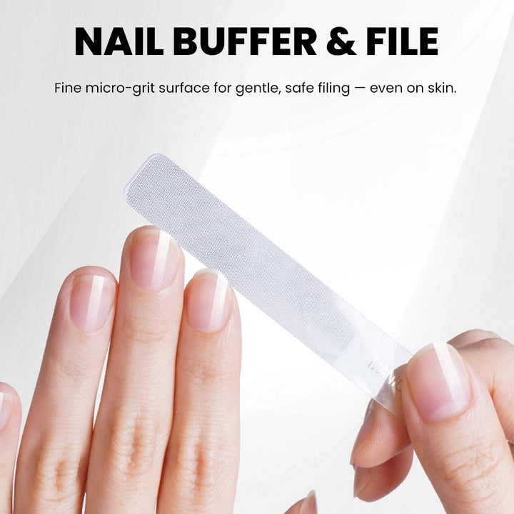 📏 Pulidor y lima de uñas – Superficie de grano fino que suaviza y da forma a las uñas de forma segura.