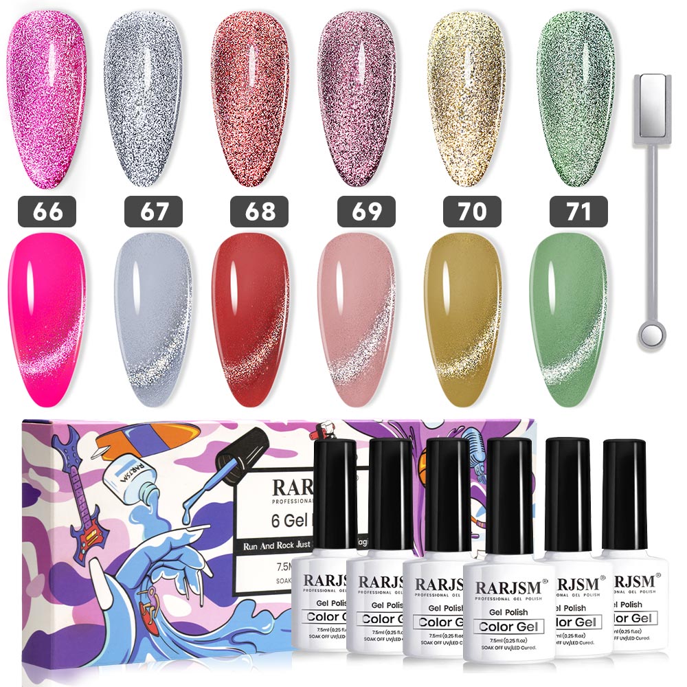 Juego de 6 esmaltes de uñas en gel estilo ojo de gato, platino brillante, 7,5 ml