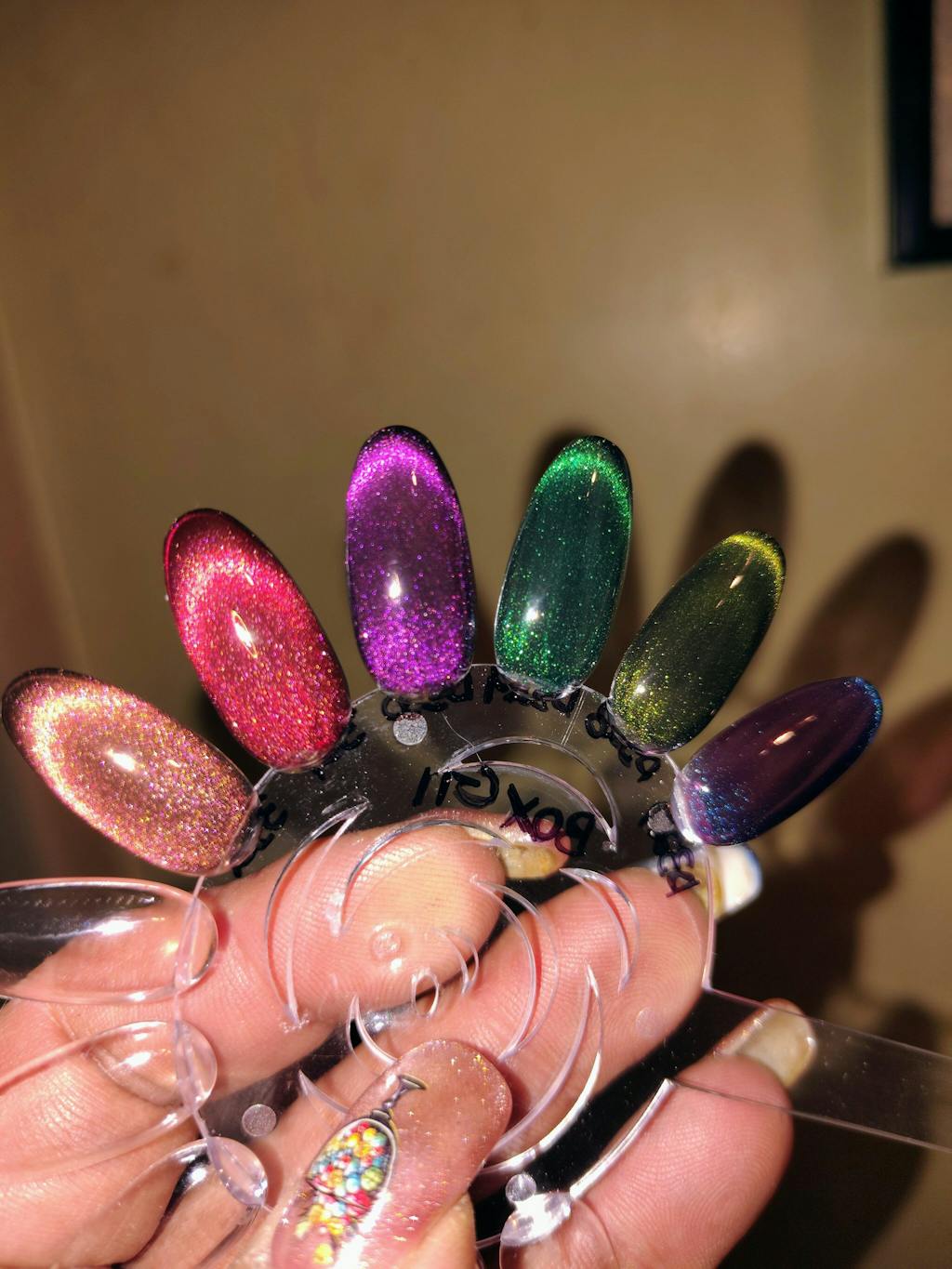 - Sostén la varita magnética a 5 mm sobre la uña durante 10-15 segundos para crear el efecto ojo de gato