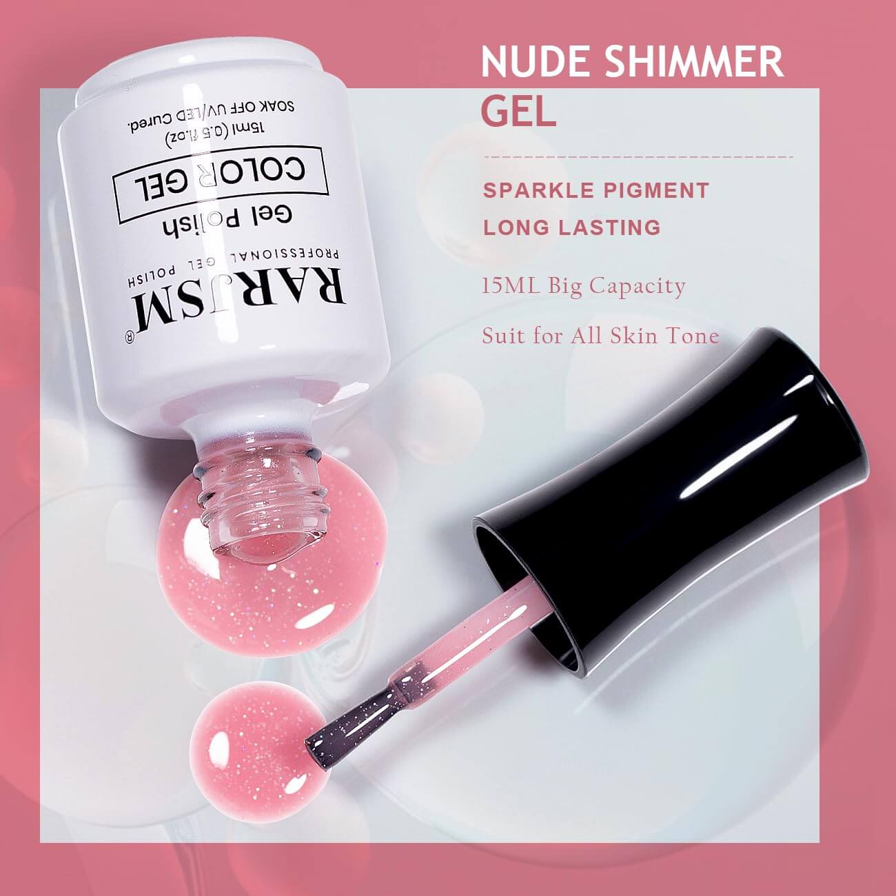 RARJSMClear Pink Sparkle Rainbow Shimmer Gel Nail Polish 15ml #754$9.99