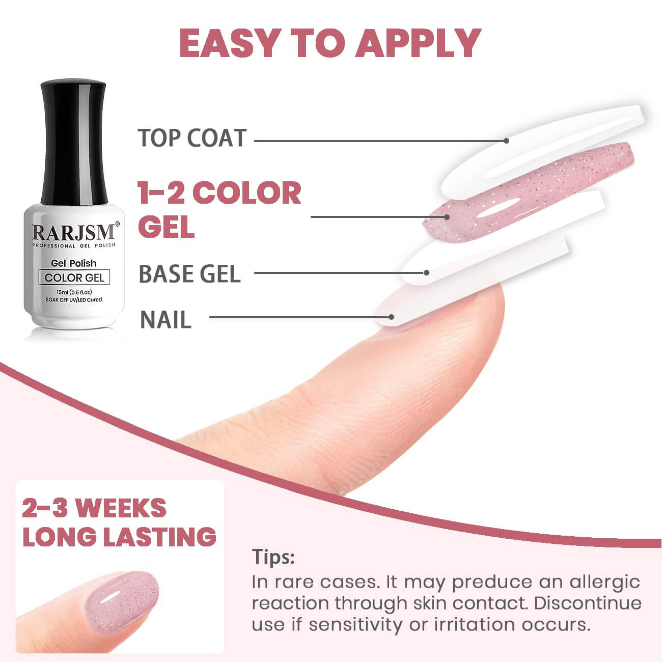 • El tono nude del gel es perfecto para un acabado natural o para realzar la cobertura de colores brillantes.