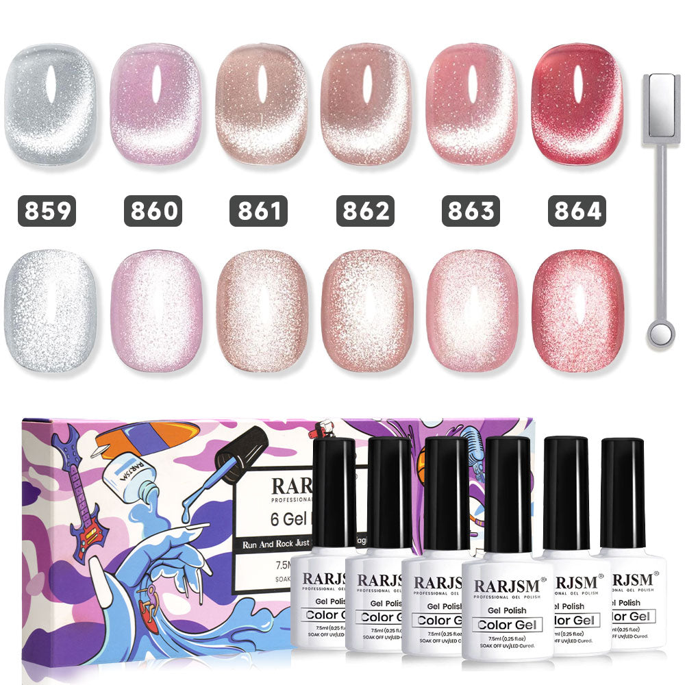 - 6 x 7.5ml de esmalte en gel Diamond Shimmer Nude Sparkle Glitter Cat Eye