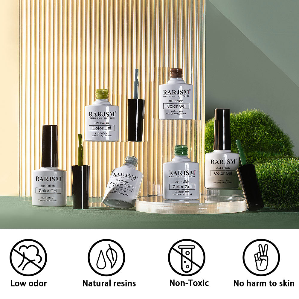 Explora la tranquila y misteriosa belleza de la naturaleza con la colección Dusk Forest de RARJSM. Con seis tonos terrosos cautivadores, este juego de esmalte en gel premium trae los ricos tonos de la naturaleza directamente a tus uñas.
