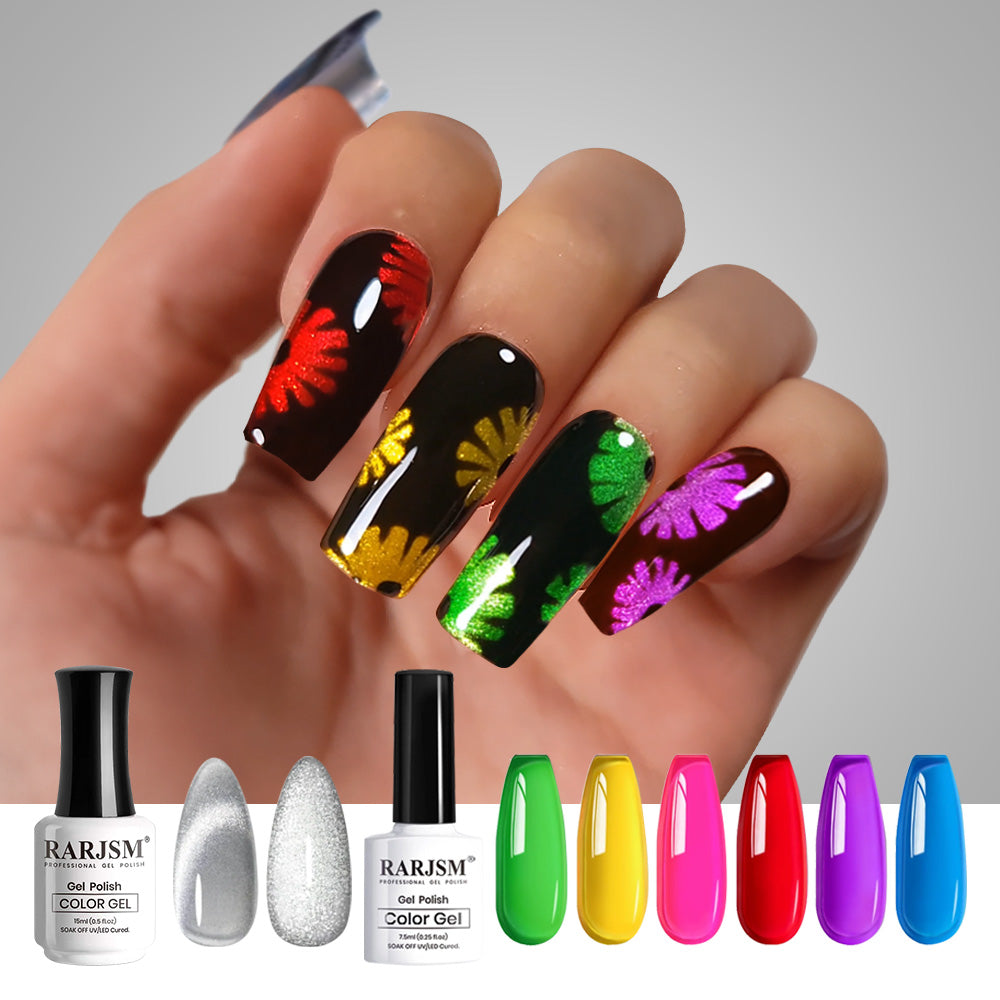 IG Nail Trend-Arte de uñas de ojos de gato con girasoles coloridos