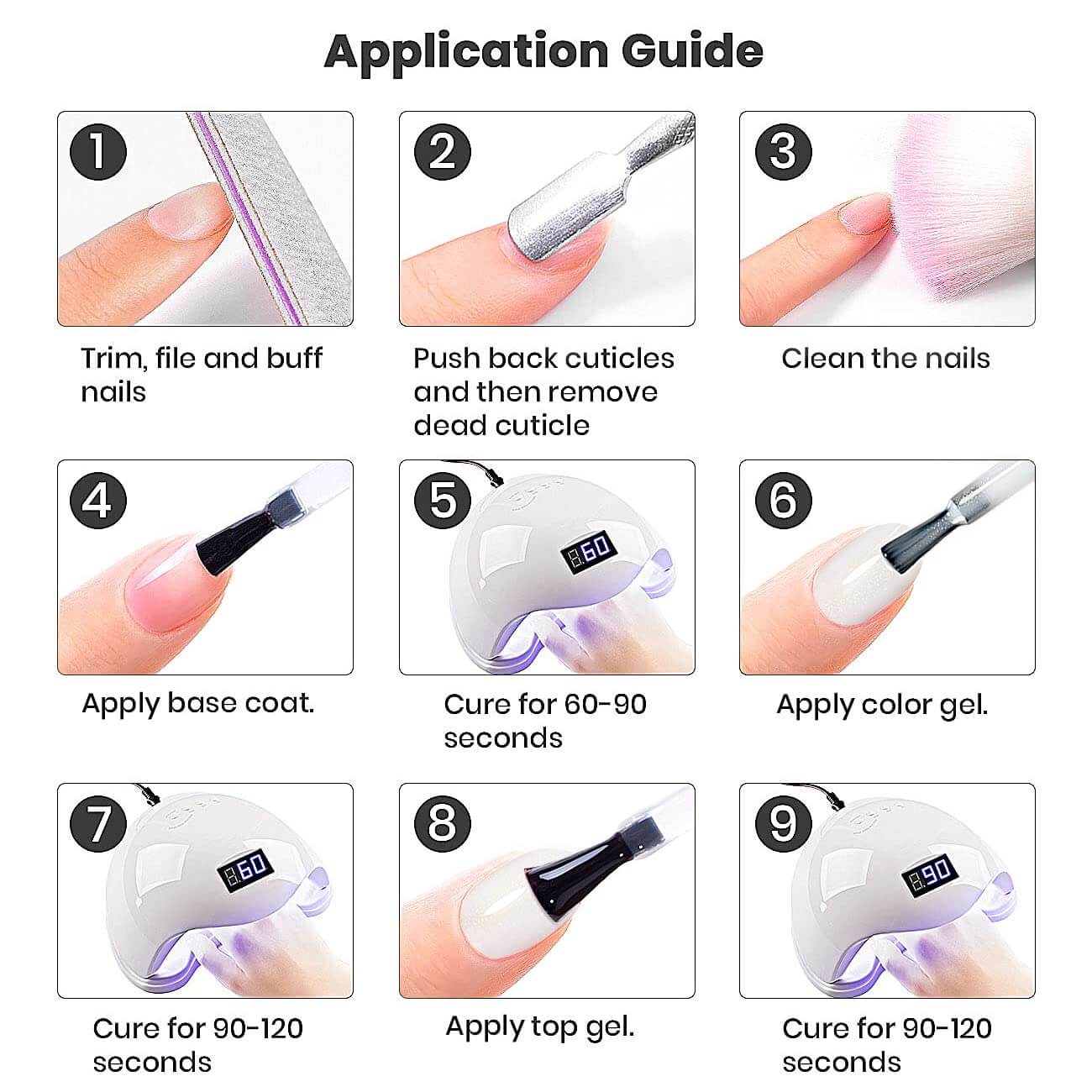 GUÍA DE APLICACIÓN RÁPIDA PARA APLICAR ESTE SET DE ESMALTE DE UÑAS EN GEL NUDE SHIMMER