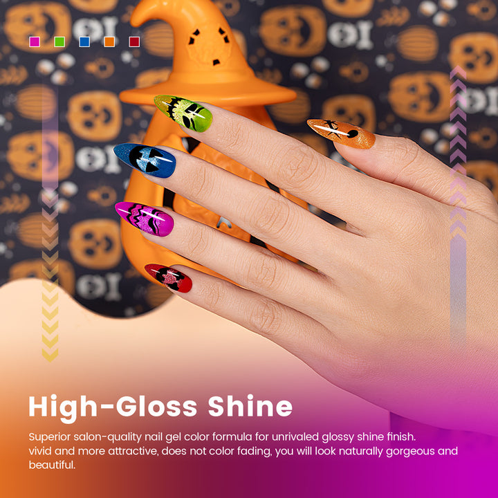 🎃 Ensemble de vernis à ongles gel œil de chat néon 9D Halloween Carnival 🎃