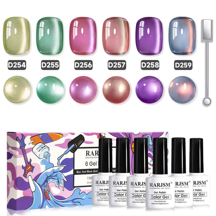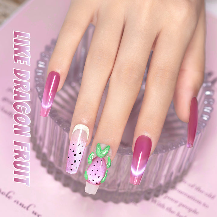 Préparez-vous à sublimer vos ongles avec le Set de Vernis Gel Œil de Chat Fruité RARJSM ! Cette collection de 6 couleurs propose des teintes vibrantes et juteuses inspirées de fruits rafraîchissants — chacune avec un effet œil de chat éblouissant qui change selon la lumière. Utilisez l'aimant inclus pour créer des designs époustouflants comme des lignes scintillantes, des dégradés et une profondeur dimensionnelle. Que vous optiez pour une lueur subtile ou un art œil de chat audacieux, ces teintes offrent une brillance digne d'un salon à la maison.