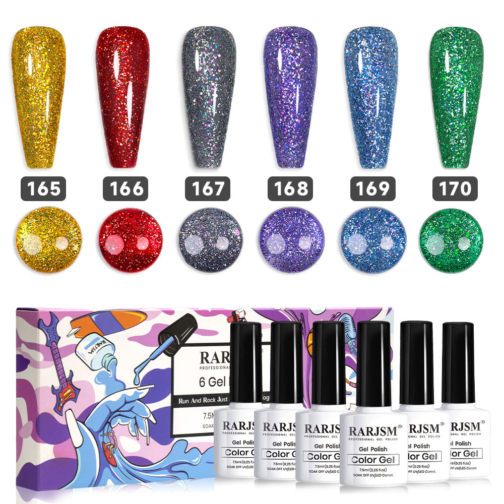 RARJSM ® Set di smalti gel per unghie con glitter per nail art a 6 colori natalizi | 8 ml 6 pezzi