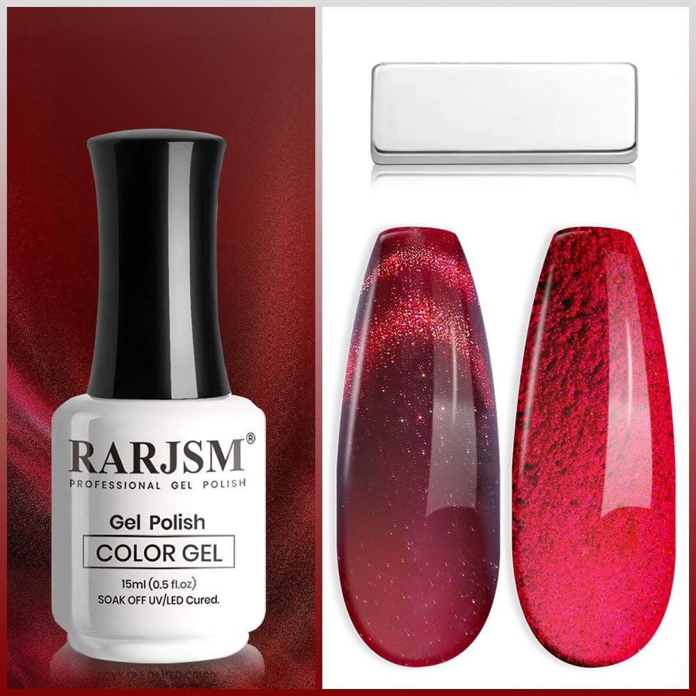 Set Smalto Gel Occhio di Gatto Glitter Rosso Incantevole Cremisi - 6 Colori Magnetici Rubino Scintillante 7,5ml