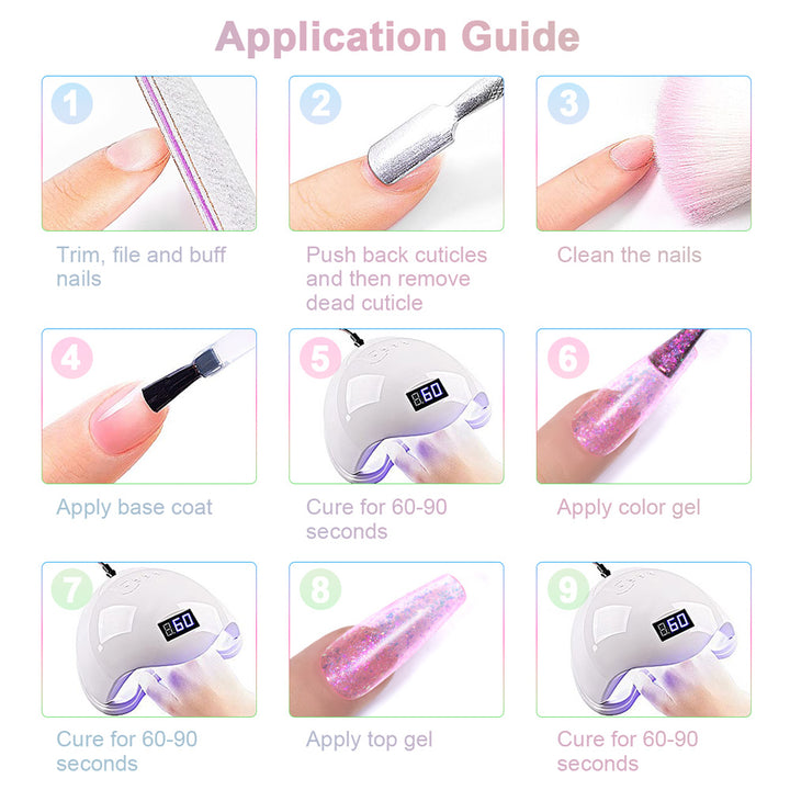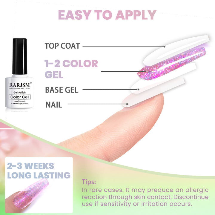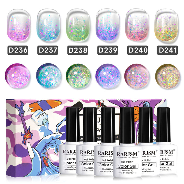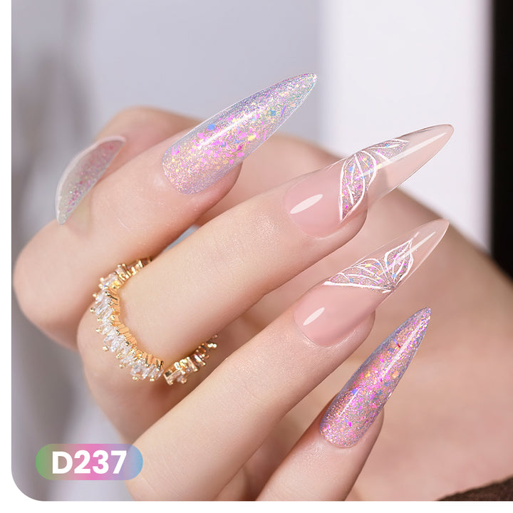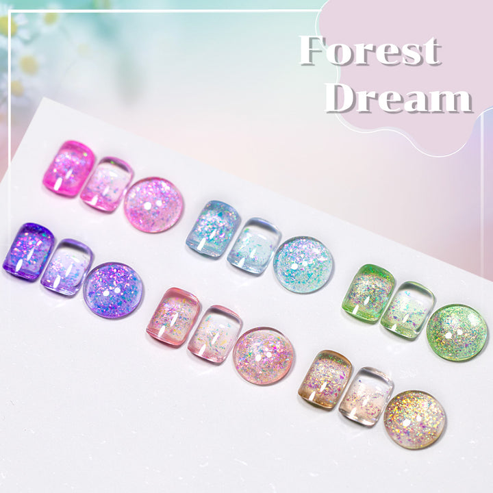 Entra in una foresta estiva da sogno con il nostro Forest Dream Gel Set. Questa incantevole collezione di 6 colori presenta basi gel trasparenti infuse con scaglie iridescenti colorate — donando alle tue unghie un bagliore leggero e da fata. Ispirato alla natura, ai sentieri illuminati dal sole e ai momenti magici nel bosco.