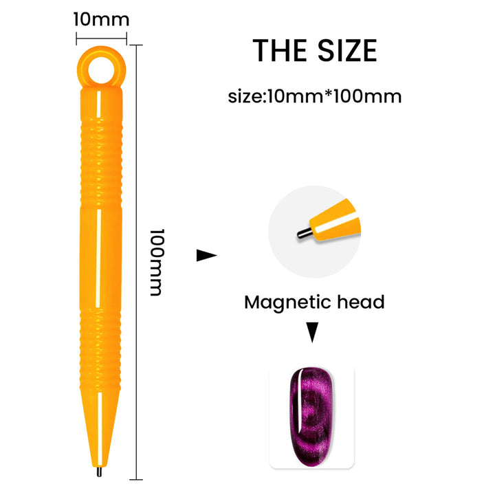 Precisione e versatilità si incontrano. Questa penna magnetica professionale a doppia punta presenta due punte magnetiche per creare facilmente e con controllo effetti occhio di gatto sorprendenti. Il design compatto da 10 cm con impugnatura ergonomica garantisce una presa confortevole e un'applicazione precisa, perfetta sia per professionisti del salone che per appassionati di nail art fai-da-te.