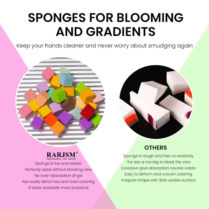 The RARJSM 100PCS Mini Soft Sponge Set is your perfect tool for achieving seamless blooming, ombre, and gradient nail effects. With a lightweight metal pen holder and 100 colorful mini sponges, this kit makes nail art easy, clean, and professional—ideal for both salon use and DIY at home.