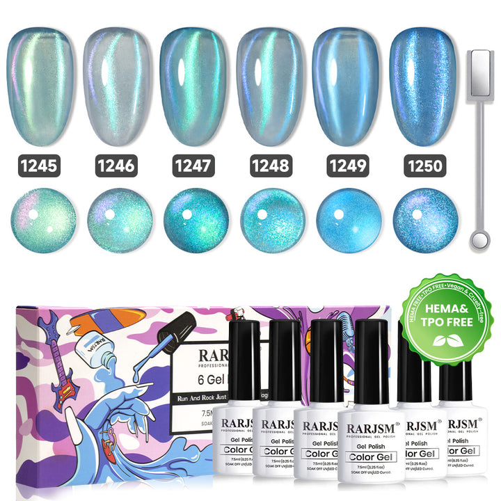 Arctic Aurora - Blue-Green Magnetic Cat eye gel polish 6 Colors Set 7.5ml