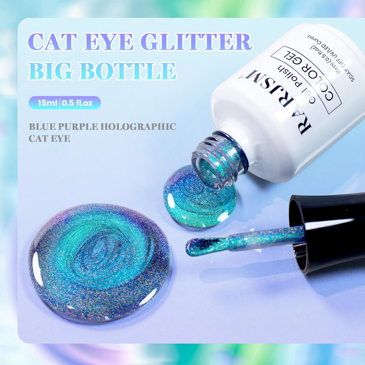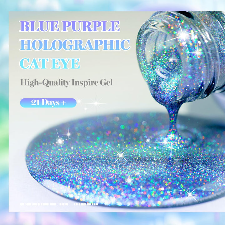 Blue Purple Holographic Cat Eye Gel Nail Polish 15ml #1283