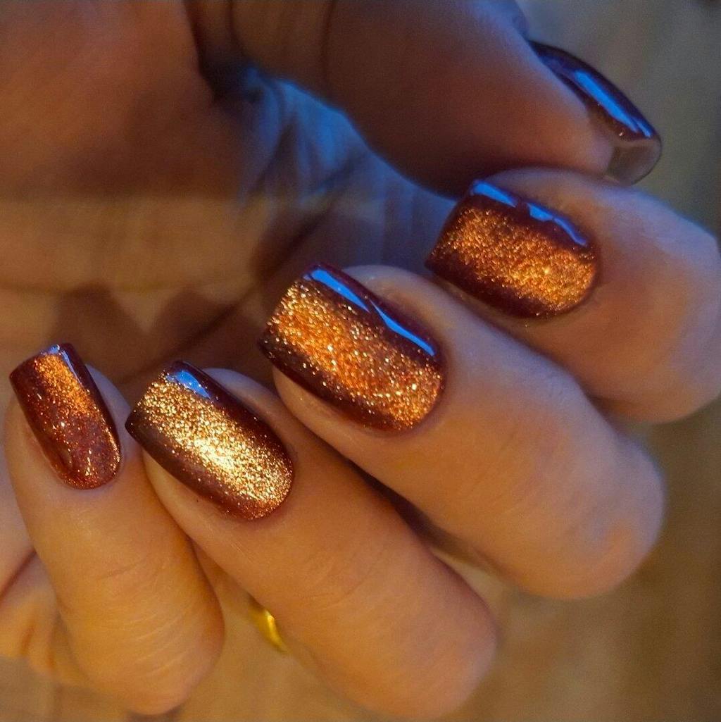 - D282 - Cinnamon Shimmer: Burnt orange-brown with golden shimmer, spiced cinnamon glow