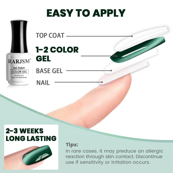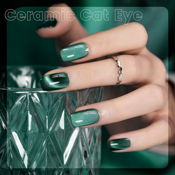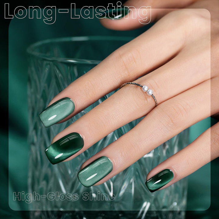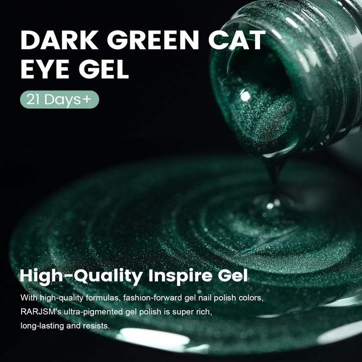 Elevate your nail game with the mysterious glow of RARJSM Moonlight Green Cat Eye Gel Polish. This deep emerald shade captures the essence of a moonlit forest, while the magnetic shimmer reveals a luminous cat eye effect that shifts with every angle. It’s bold, elegant, and perfect for all seasons.