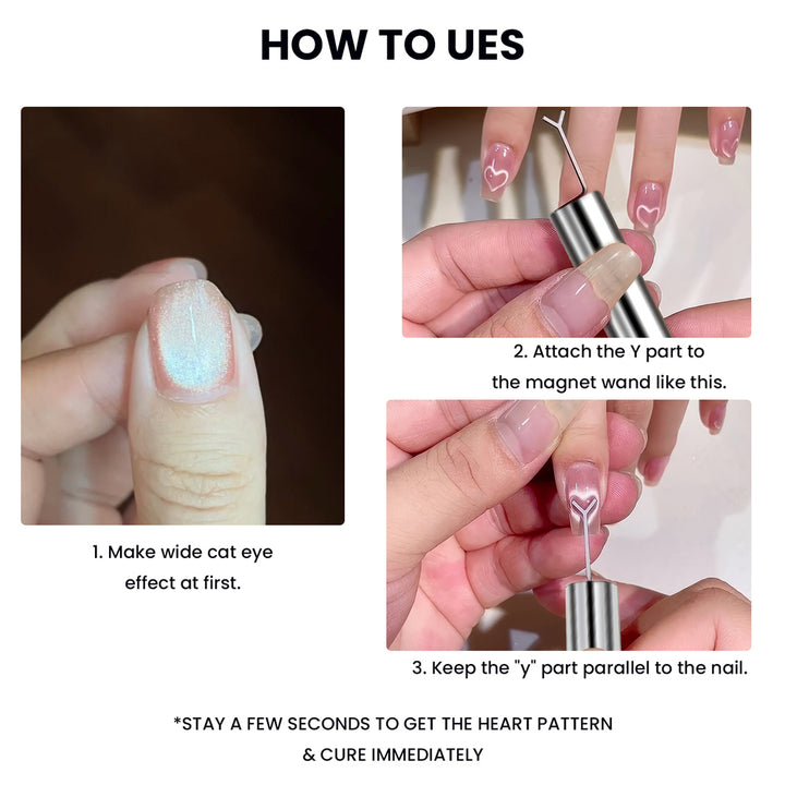 How to use heart cat eye magnet wand set make wide cat eye attach Y part keep parallel to nail tutorial