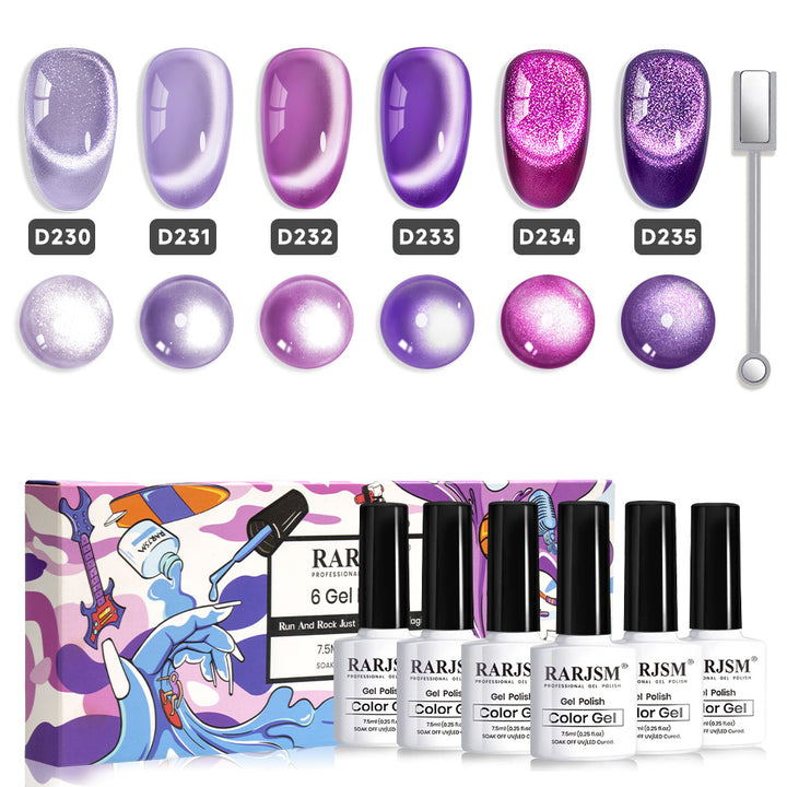 Lavender Twilight Cat Eye Gel Nail Polish 6 Colors Set 7.5 ml