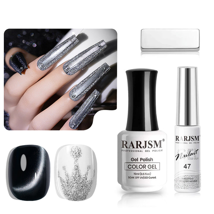 • Perfect Duo Combination: Black cat eye base + silver glitter liner for endless creative nail art possibilities