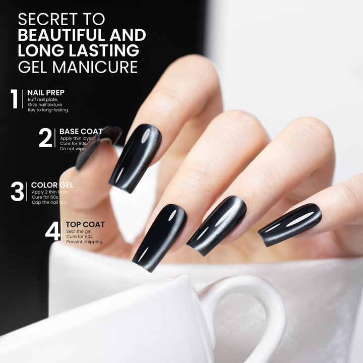 • Obsidian Cat Eye Gel Polish (7ml): Deep black with magnetic shimmer, creates stunning cat eye effect with dimensional beam