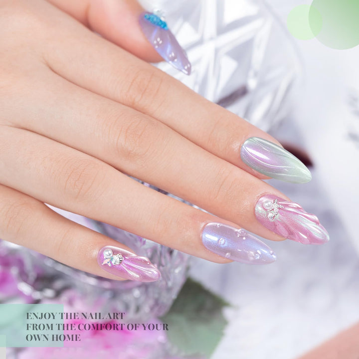 This 6-color sheer-pearl gel set delivers a delicate, glazed radiance with a smooth, milky glow—perfect for elegant daily looks, bridal nails, or trending pearly glazed manicures.