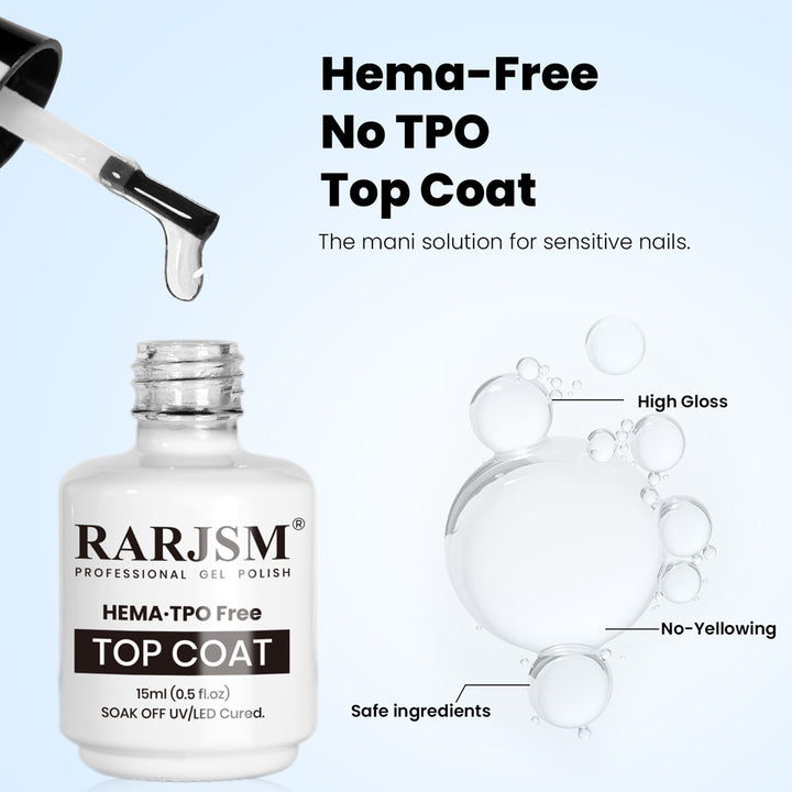 Complete your manicure safely and beautifully with RARJSM’s TPO & HEMA Free Nail System — the perfect match for our gentle Base Coat.