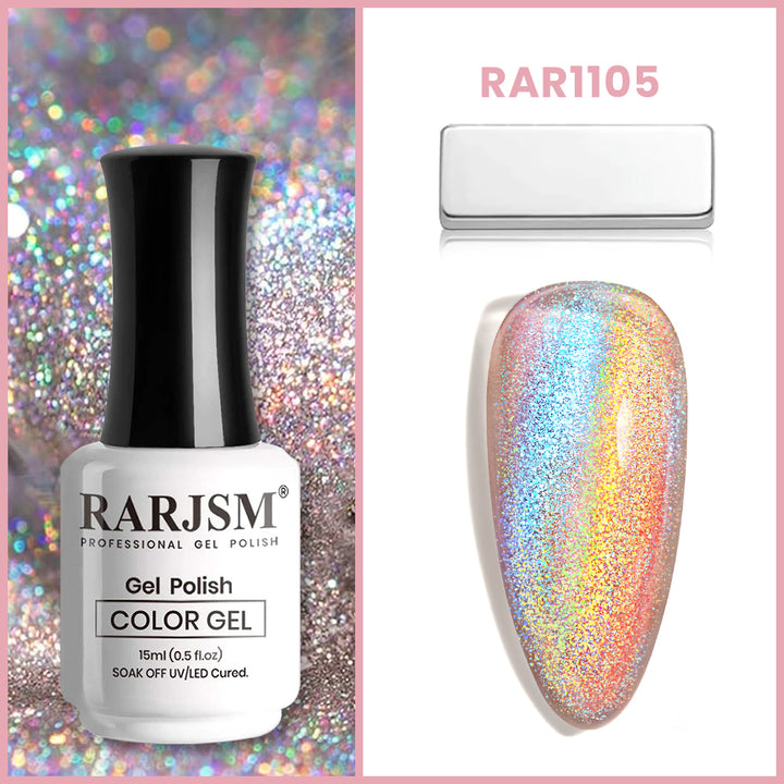 Let your nails glow with the breathtaking spectrum of RAR1105, a dazzling magnetic cat eye gel that shifts through icy blue, soft lavender, warm coral, rose pink, and flashes of golden yellow — like catching a rainbow in a droplet of light. Inspired by the phenomenon of "blue tears" in the sea, this polish creates a dreamy, aurora-like shimmer that moves with every flick of your finger.