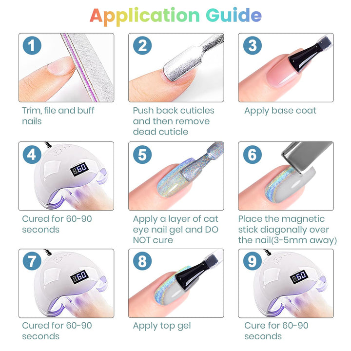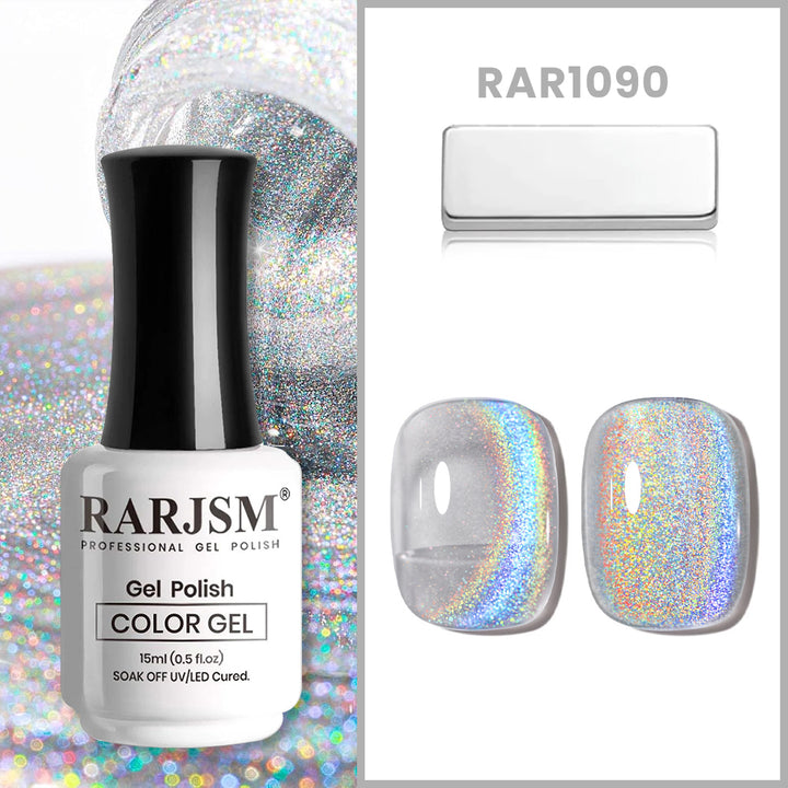 Step into the spotlight with RARJSM RAR1090 Holographic Cat Eye Gel Polish, a dazzling blend of silver glitter and rainbow holographic shimmer. With just a swipe of the included magnet, you can create a multidimensional cat eye effect that shifts and shines under every light.