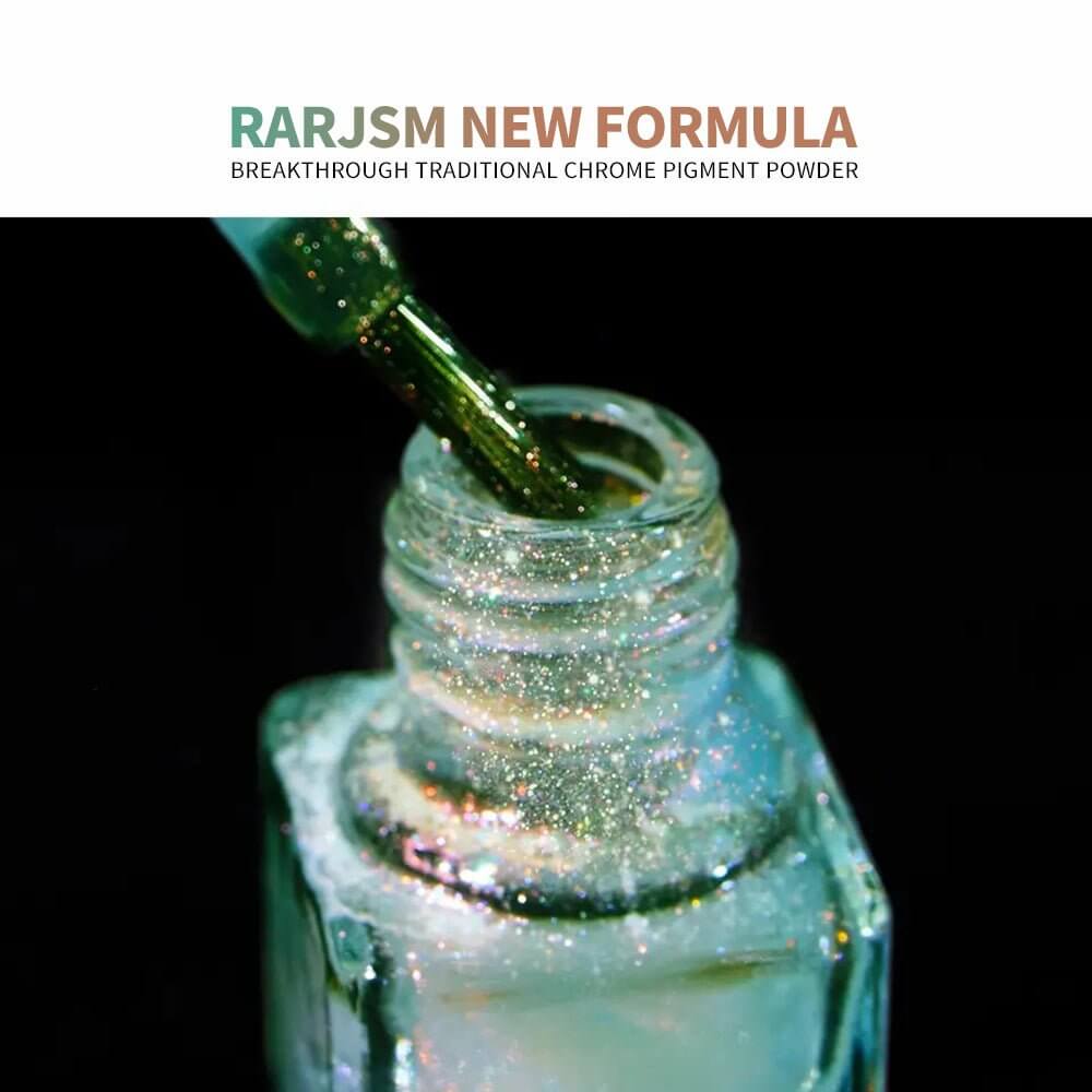 Introducing this new generation chrome powders, RARJSM Magic Liquid Powder! No more lifting, peeling, messy or flying pigments! This revolutionary brush-on formula is so easy to apply and bring you colorful shining mirror nail look! Also they have different eff ects on different base colors! Grab them to discover more amazing nail looks!