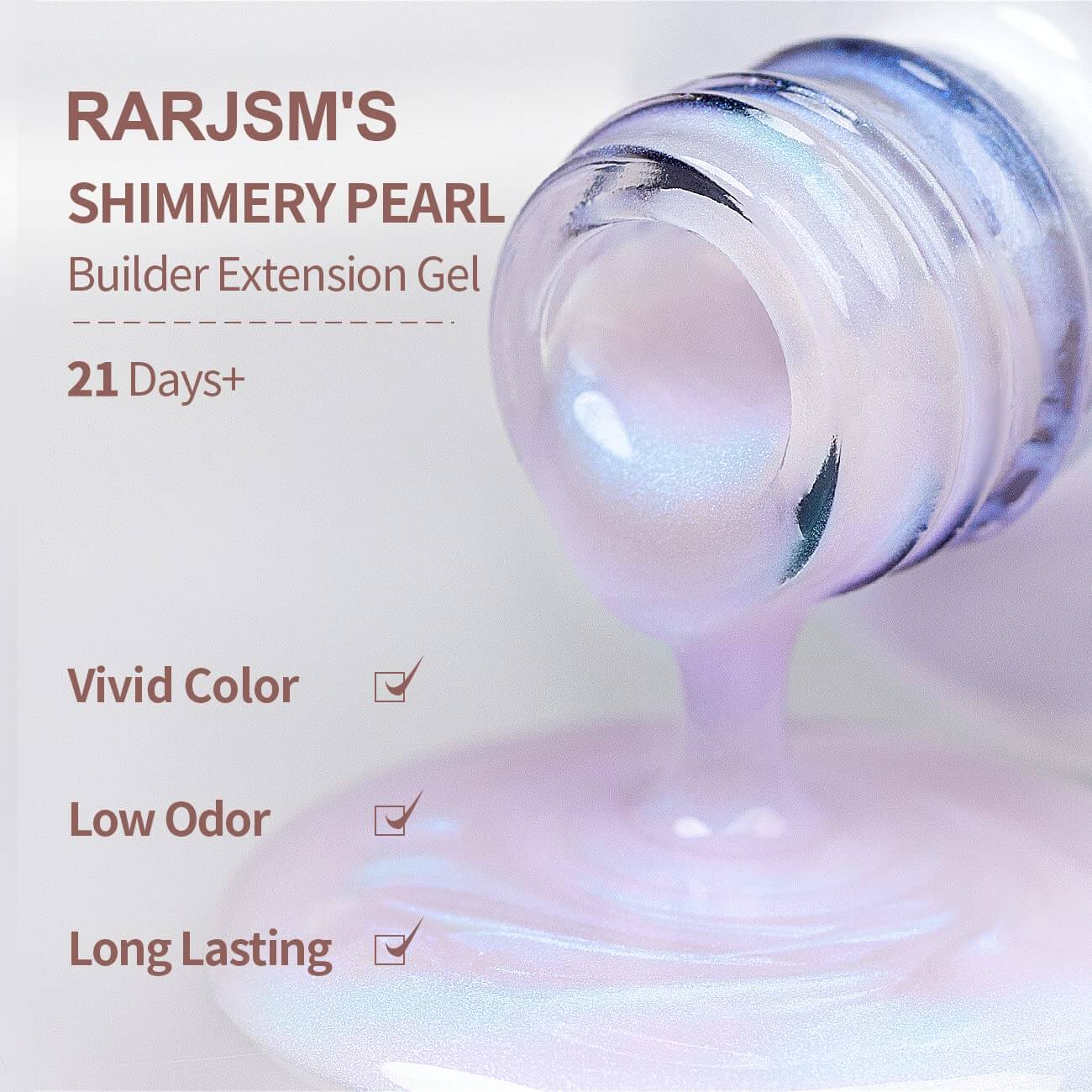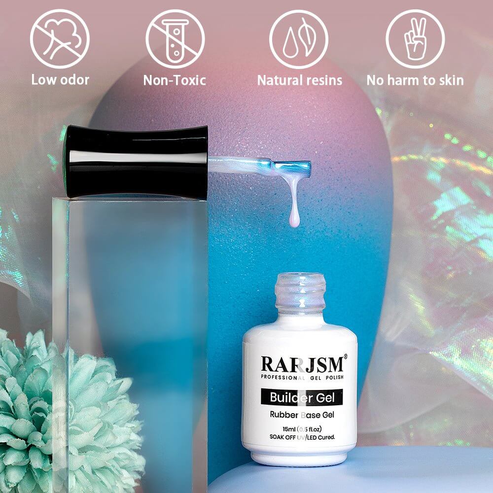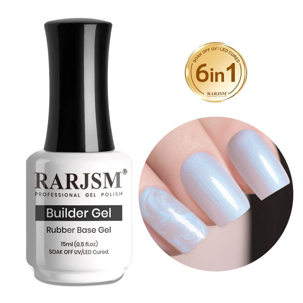 RARJSM builder gel nail polish is a pearl glitter gel and it tends to be thicker than regular gel nail polish. Builder gel can be used as structure gel ,quick extension gel, color gel and nail strengthener gel. Also, it helps to make your nails more flexible if you have weak and brittle nails that might break or crack easily.