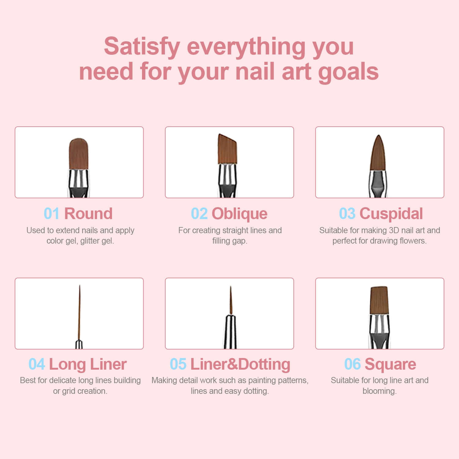 💋BUNDLE SET–6PACK: Professional nail brushes come with 6 different nail design pens. Including nail extension gel brush, builder gel brush, nail carved pen, nail art liner brush and nail dotting pen. They will give you beautiful nails right at home.