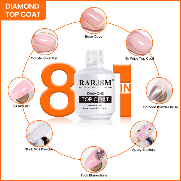 Discover our full range of functional nail gels — including rubber base, builder gel, self-leveling formulas, matte and no-wipe diamond top coats. Designed for strength, structure, and flawless finishes.
