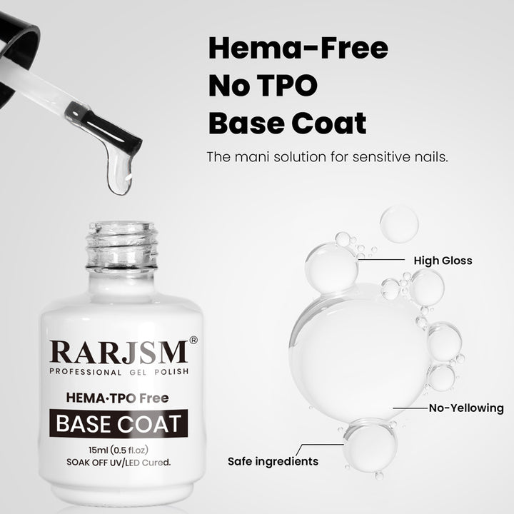 Formulated without TPO, HEMA, or harmful sensitizers, this gentle base coat ensures a safer manicure experience—ideal for those with sensitive nails or skin.